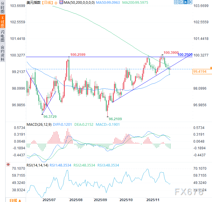 汇通财经APP讯——周二(12月2日)亚市时段,美元指数于99.43附近窄幅震荡,暂时止住前五个交易日跌势。美元技术