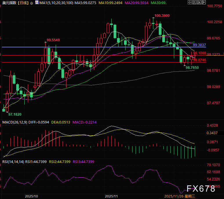 12月美元指数的核心博弈逻辑,在于技术面企稳与宏观面压力的相互制衡。